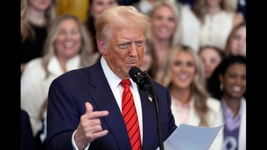 Trump also issued a warning to the International Olympic Committee ahead of the 2028 Summer Olympics in Los Angeles. The president said he had empowered Secretary of State Marco Rubio to make it clear to the IOC that "America categorically rejects transgender lunacy. We want them to change everything having to do with the Olympics and having to do with this absolutely ridiculous subject."