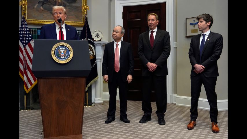 WASHINGTON (AP) — President Donald Trump on Tuesday talked up a joint venture investing up to $500 billion for infrastructure tied to artificial intelligence by a new partnership formed by OpenAI, Oracle and SoftBank.