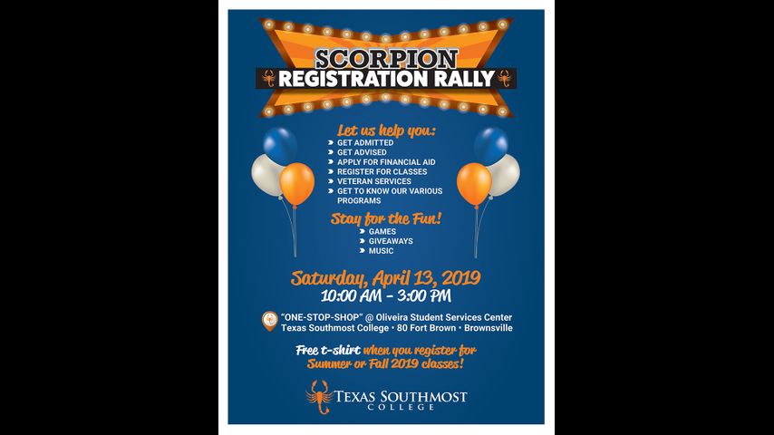 BROWNSVILLE – TSC will be hosting their Scorpion Registration Rally on April 13 from 10 a.m. to 3 p.m. at the TSC Oliveira Student Services Center.