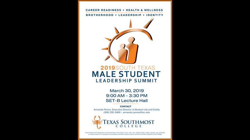 BROWNSVILLE, TX- Texas Southmost College will be hosting the TSC South Texas Male Student Leadership summit on Saturday, March 30 from 9 a.m. to 3:30 p.m.