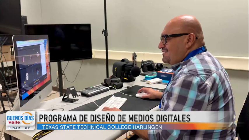 Santiago Villareal, instructor de TSTC, visita las instalaciones de Noticias RGV para informar a la comunidad del Valle sobre los programas de diseño de medios digitales.