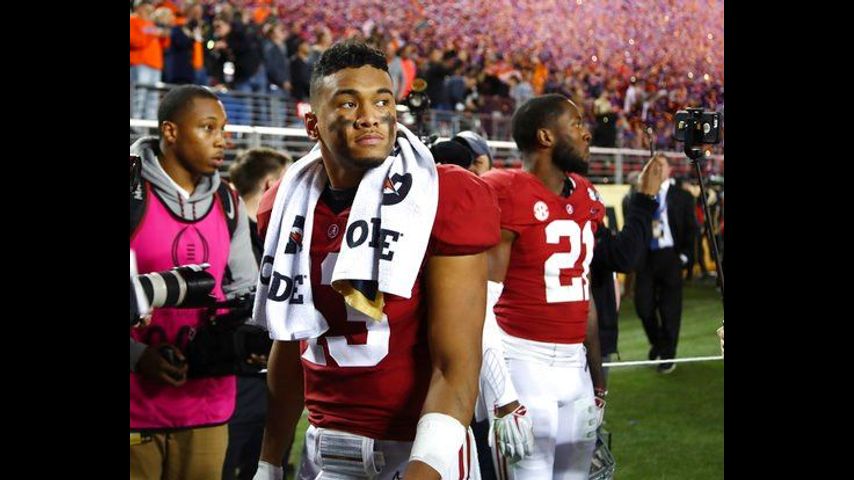 Tagovailoa announced his arrival as a star on this stage a year ago when he came off the bench to throw three TD passes, including the game-winner in overtime to beat Georgia 26-23 for the championship in Atlanta. He followed that up with a Heisman Trophy runner-up campaign, throwing 41 TD passes and only four interceptions for the top-ranked Crimson Tide (14-1) to lead them back to the playoff as a sophomore.