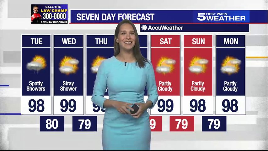 Tuesday, August 13, 2024: Spotty showers, temps in the 90s