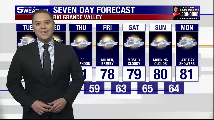 Tuesday, Dec. 10, 2019: Cooler in the evening, windy, temps in the 70s