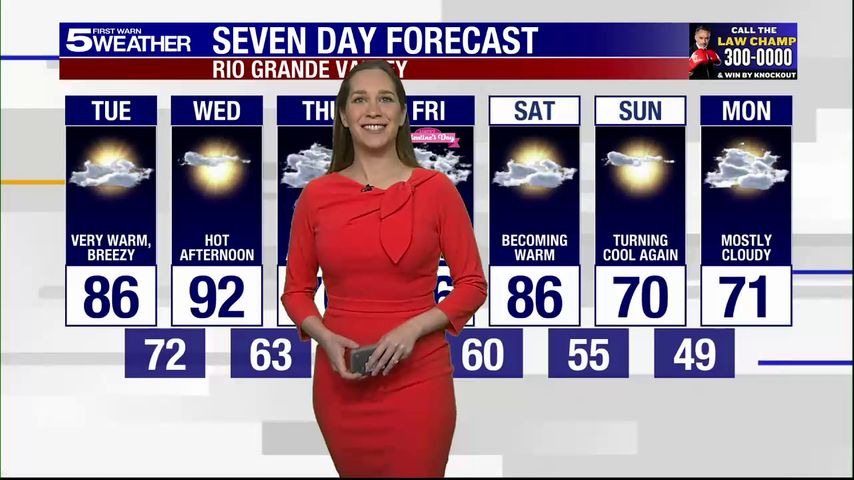 Tuesday, Feb. 11, 2025: Very warm, breezy, temps in the 80s