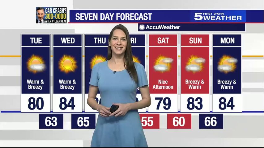 Tuesday, Feb. 20, 2024: Breezy and warm, temps in the 80s