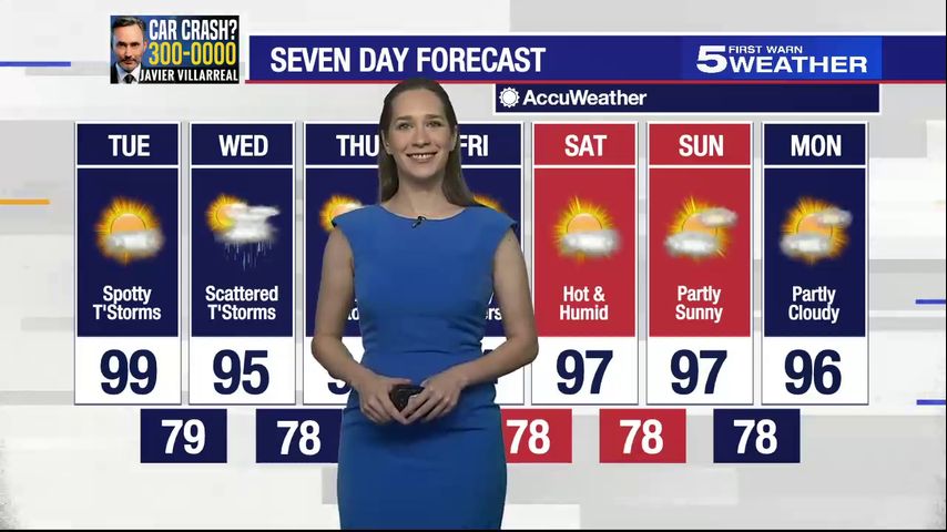 Tuesday, July 9, 2024: Spotty t-storms, temps in the 90s