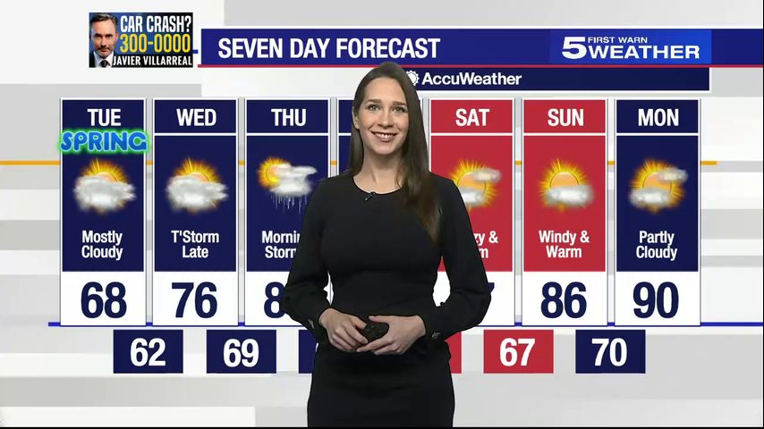 Tuesday, March 19, 2024: Mostly cloudy, temps in the 60s