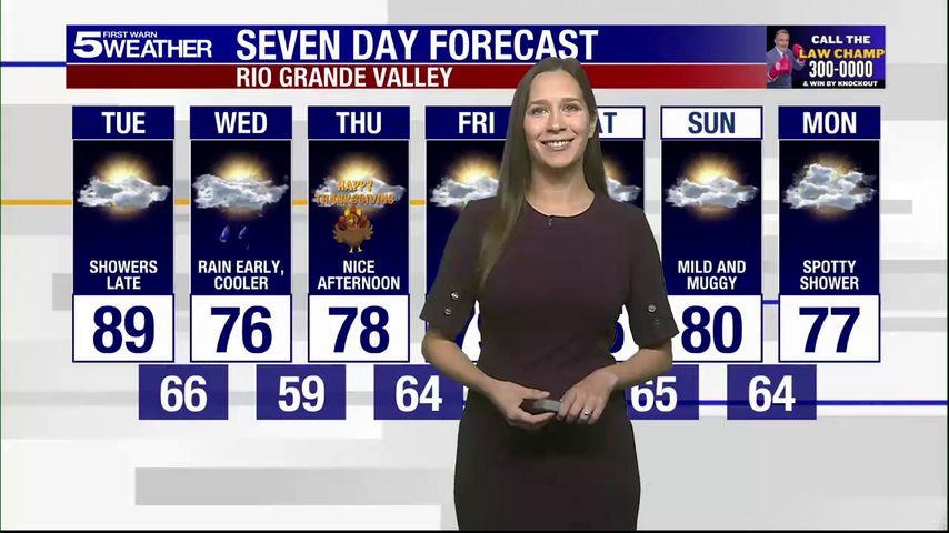 Tuesday, Nov. 25, 2025: Late showers with highs in the 80s