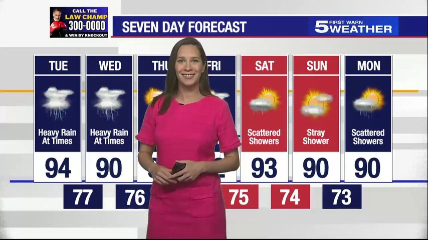 Tuesday, Sept. 3, 2024: Heavy rain at times, temps in the 90s