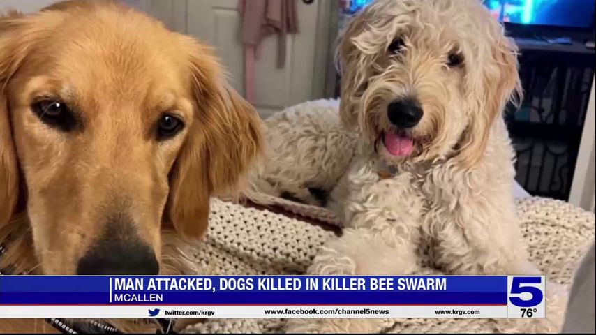 A McAllen man is recovering at home after a swarm of bees attacked him and his two dogs.