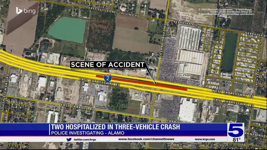 Alamo police are investigating a three-vehicle crash that sent two people to the hospital.