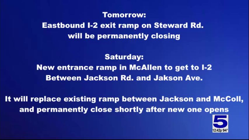 The first one starts on Wednesday, June 12 as the eastbound I-2 exit ramp on Stewart Road in Pharr will close permanently.