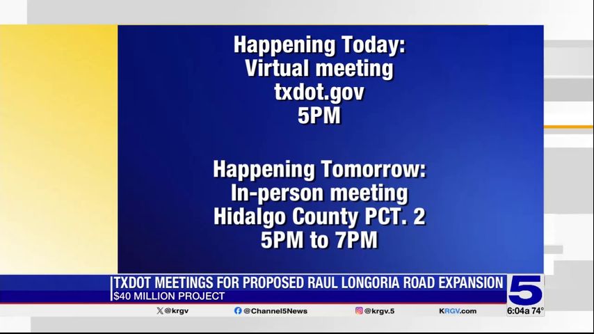 The Texas Department of Transportation will be holding one of two public meetings on Monday on the expansion of Raul Longoria Road in San Juan.