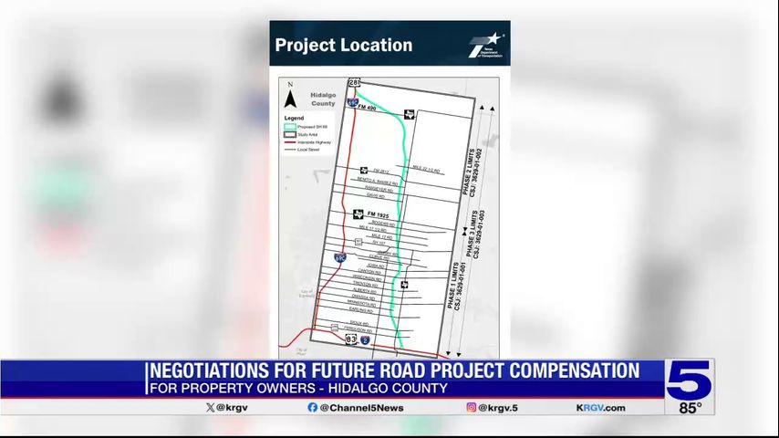 In May 2025, TxDOT will begin looking for a company to help buy all the land along the route. The route starts east of Val Verde Road in Donna and stretches to Highway 281 north of the South Texas International Airport north of Edinburg.