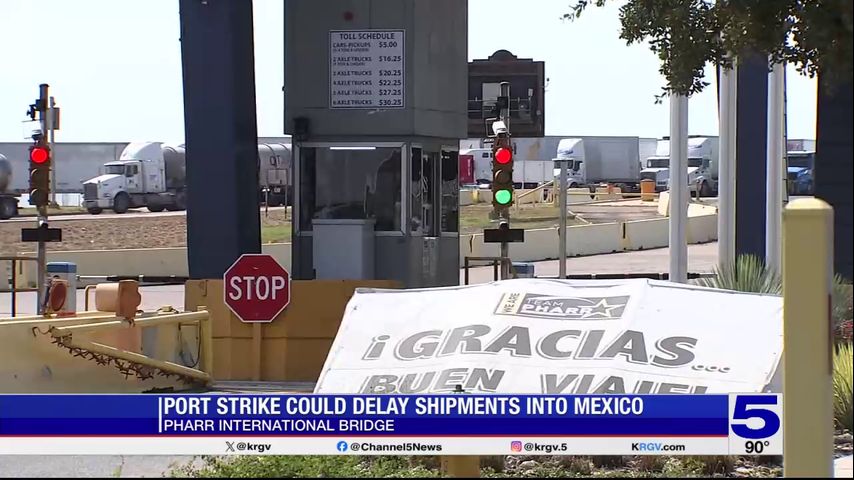 As trucks full of mechanical equipment and produce from Mexico roll into the U.S. through the Pharr International Bridge Wednesday, dockworker strikes at seaside ports in cities like Houston and New York continue.