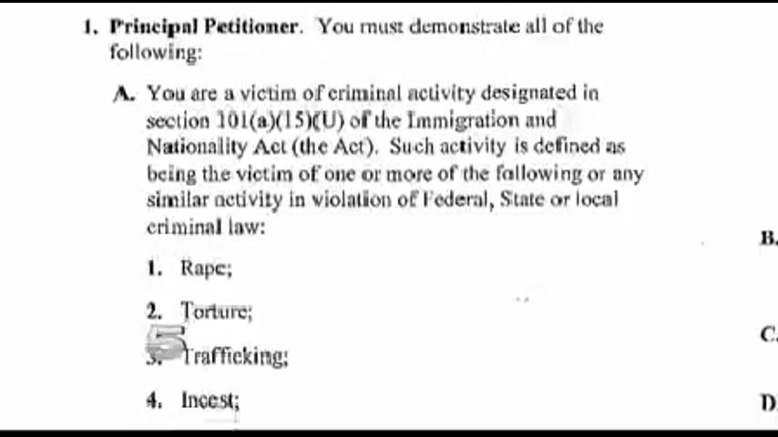 An immigrant must be a victim of certain crimes to be eligible. A federal, state or local government agency investigating or prosecuting the case must sign the form that says the victim was helpful in their investigation or prosecution.