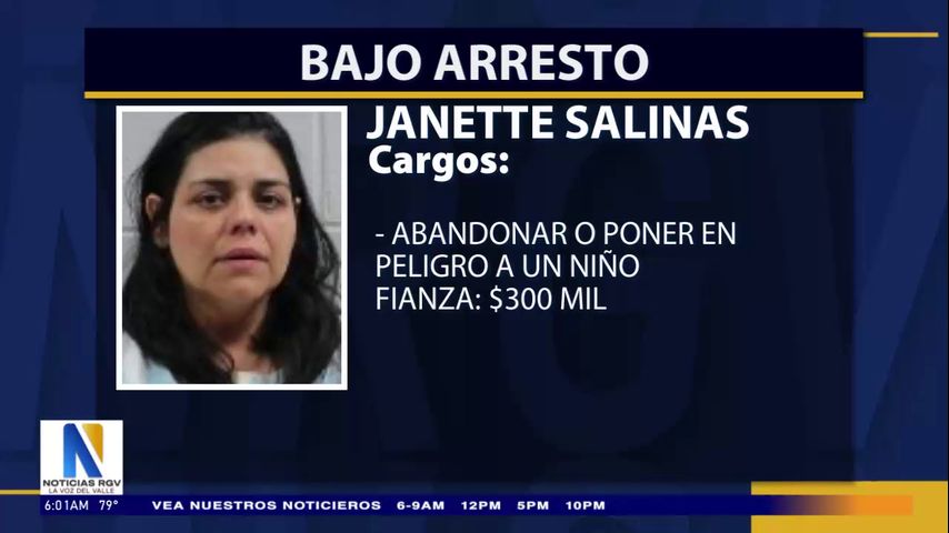 Según un comunicado de prensa, Janette Salinas fue acusada de abandonar o poner en peligro a un niño; su fianza se fijó en $300,000.