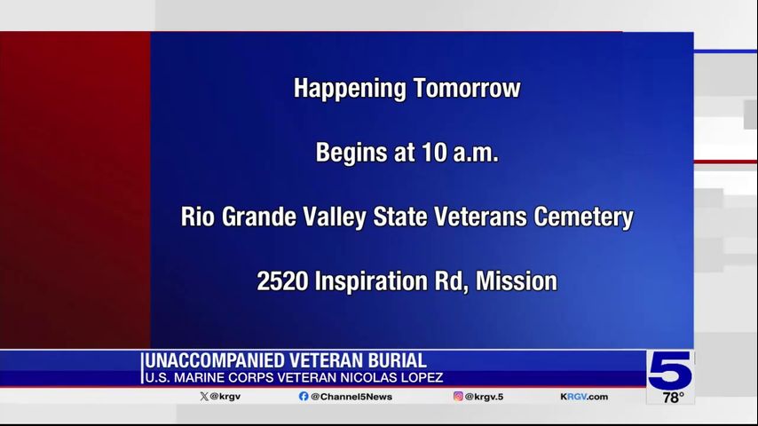 CPL Lopez is not expected to have any relatives attend his burial at the Rio Grande Valley State Veterans Cemetery, located at 2520 South Inspiration Road.