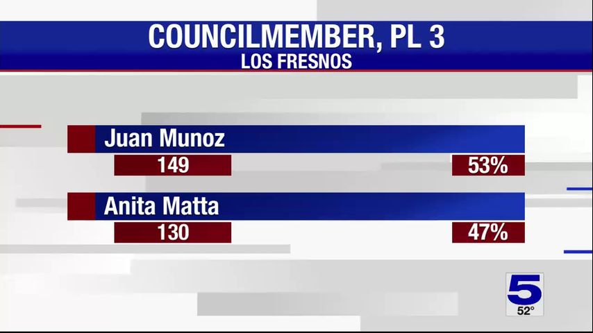 Unofficial election results for the Los Fresnos Place 3 special election show Juan Munoz is in the lead.