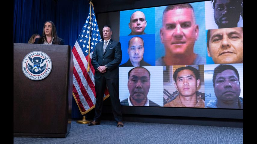 "These represent the true national security threats," Lyons said at a news conference. Behind him was a display of photos of men he said had been convicted of rape, homicide, armed robbery and other crimes.