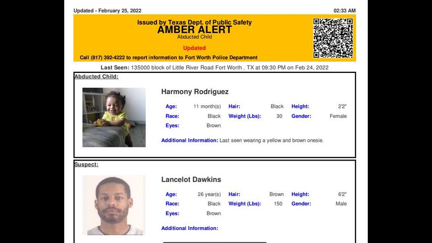 Original Story: An Amber Alert was issued Friday morning for a missing 11-month-old girl last seen in Fort Worth.