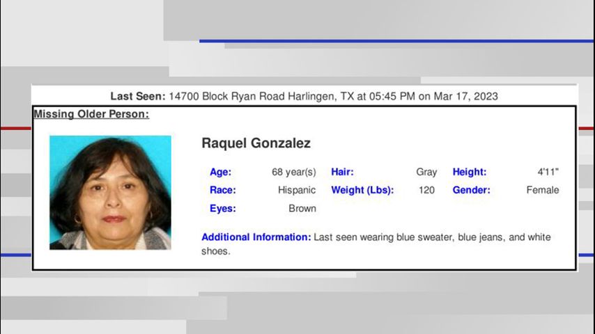 A Silver Alert was issued for a missing-68-year-old woman last in Harlingen on Friday.