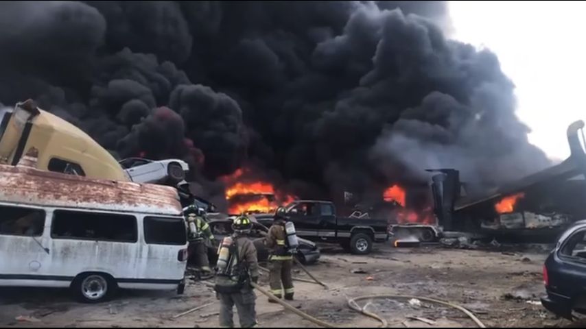 Update: Multiple agencies respond to junkyard fire in La Blanca