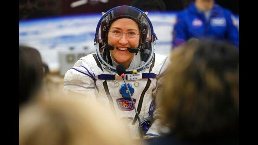 Station astronaut Christina Koch (Cook) will remain on board for about 11 months, until February. That approaches but doesn't quite break Scott Kelly's 340-day U.S. record. She knew before launching last month that her flight might stretch into 2020. She says it's awesome.