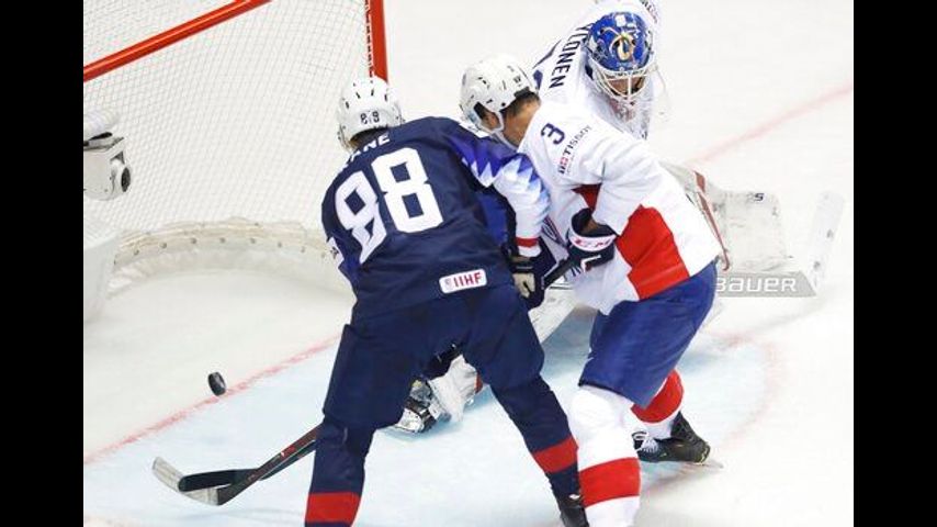 Colin White also had two while Patrick Kane, who captained the Americans to the bronze medal at last year's worlds in Denmark, scored his first goal in Slovakia and added an assist.