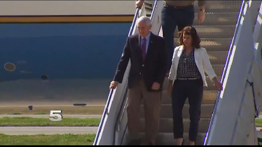 The vice president was accompanied by Second Lady Karen Pence, U.S. Secretary of Homeland Security Kirstjen Nielsen and U.S. Senator Ted Cruz.