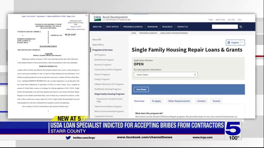 USDA employee indicted for accepting bribes from Rio Grande City contractors