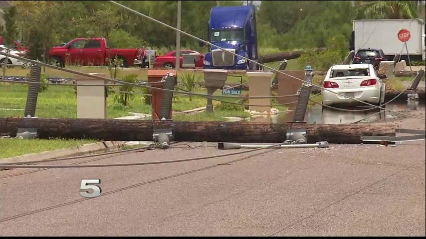 Utility poles brought down by Hurricane Hanna in Edinburg