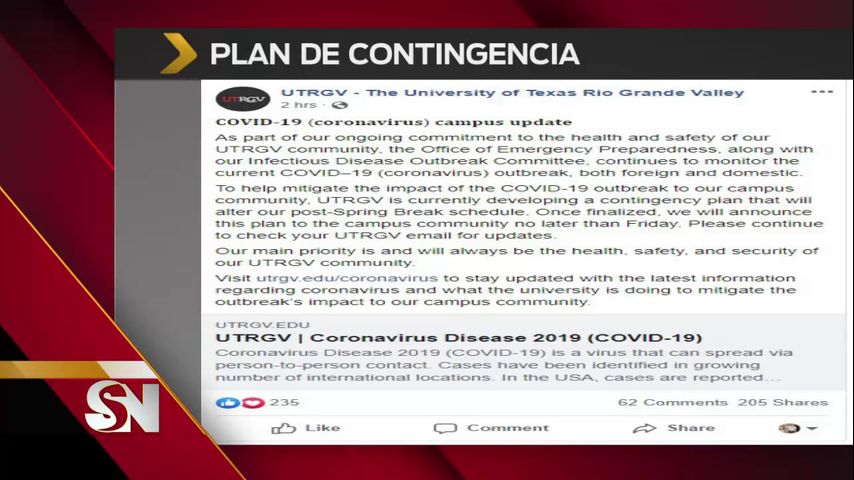 En una publicación en Facebook, UTRGV dice que este plan "es para mitigar el impacto del brote del COVID-19 en la comunidad de nuestro campus.