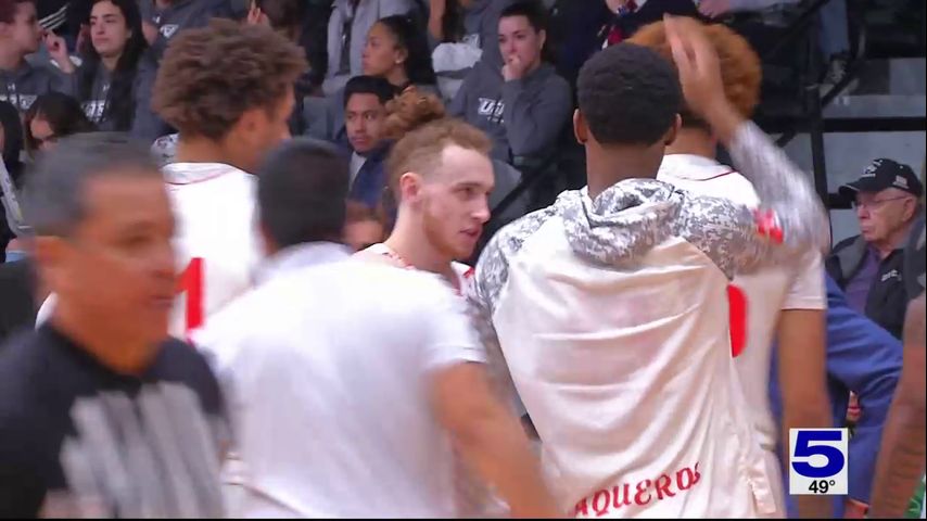 The Vaqueros trailed 63-54 when a Johnson hit a layup with 3:22 remaining. Zdor and Johnson each hit a pair of free throws to bring the Vaqueros within one possession. Then, after a Huefner layup, Johnston hit a pair of free throws followed by a 3-pointer with 30 seconds left to tie the game at 65.