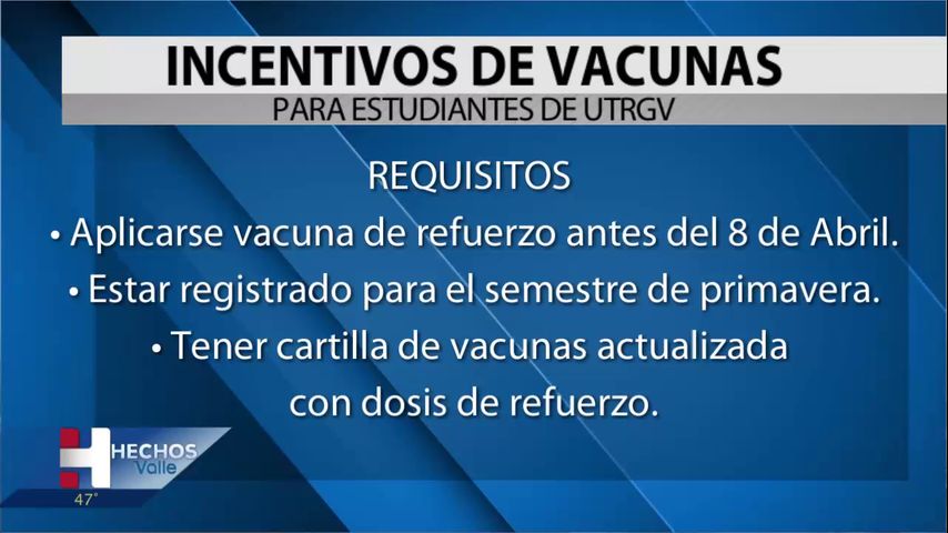 La Universidad de Texas Rio Grande Valley está ofreciendo $100 a los estudiantes que reciben su vacuna de refuerzo COVID-19.