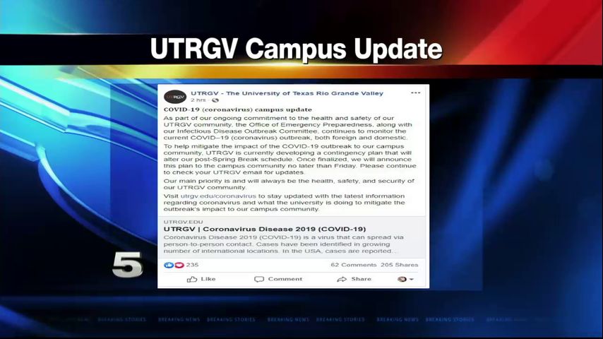 In a Facebook post, UTRGV said they are “currently developing a contingency plan that will alter our post Spring Break schedule.”