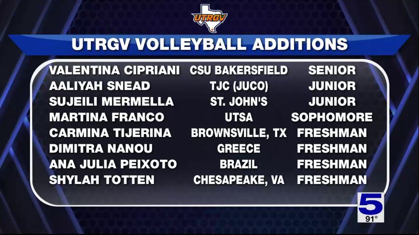 The UTRGV volleyball team announced their additions to the team ahead of the 2025 season.