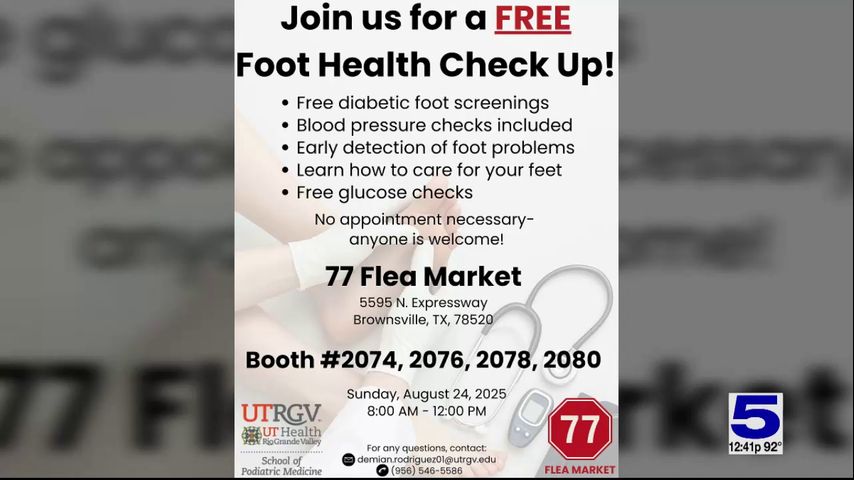 UTRGV School of Podiatric Medicine volunteer coordinator Demian Rodriguez speaks with Channel 5 News' Dina Herrera Garza about the free screenings they will be providing and how this will help raise awareness on diabetes and foot health.