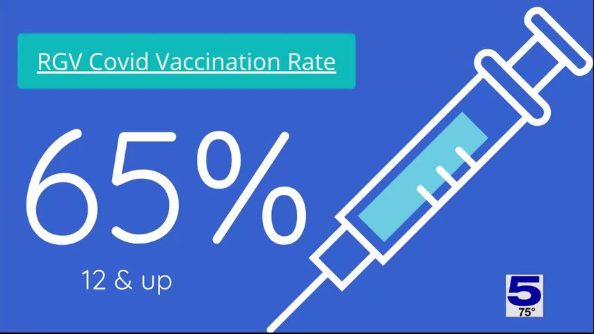 According to the Department of State Health Services, around 65% of people in Cameron and Hidalgo counties who are eligible for the COVID vaccine are fully vaccinated.