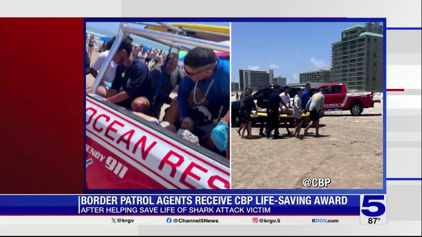 Two Border Patrol agents were honored for their efforts in saving a person who was attacked by a shark on South Padre Island.