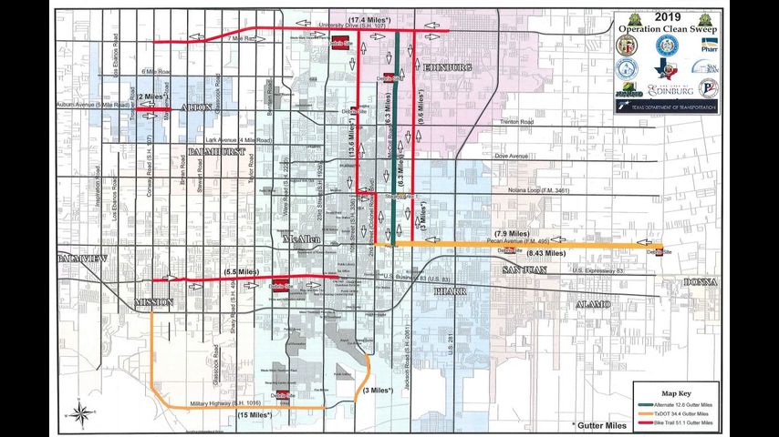 The cities involved in this major street sweeping effort include McAllen, Alamo, Alton, Edinburg, La Villa, Mission, Pharr and San Juan.