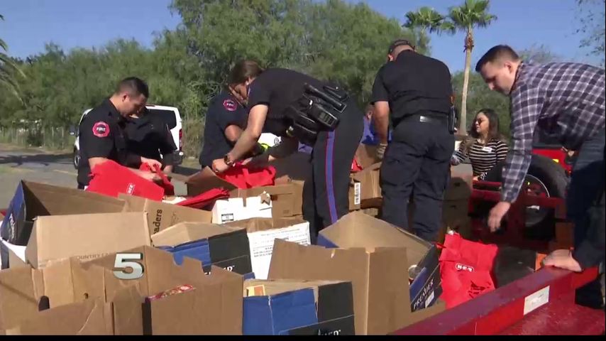 The Edinburg police and fire departments gathered at the Edinburg Parks and Recreation area for the Edinburg Cares Drive.