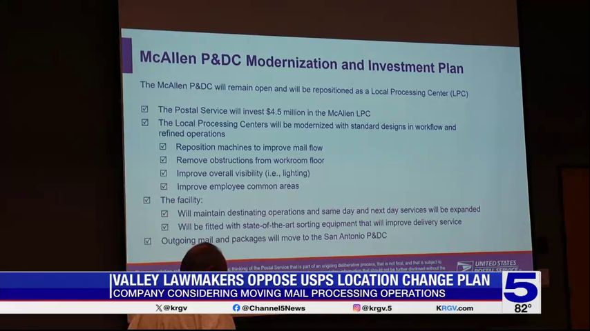 Two Rio Grande Valley lawmakers were among those signing a letter opposing a proposal to shift mail processing operations away from Corpus Christi and McAllen to a centralized processing facility in San Antonio, according to a news release.