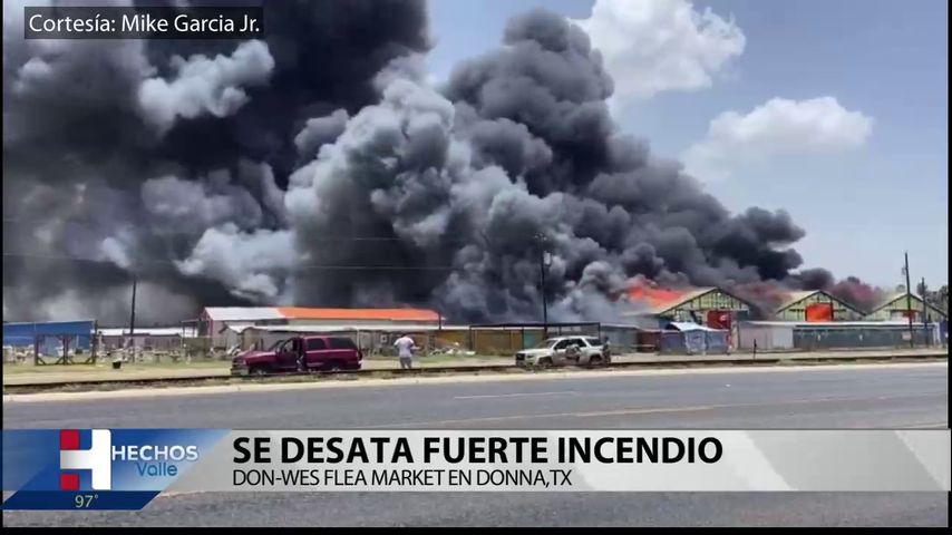 Un incendio masivo estalló el sábado en Donna en el mercado de pulgas Don-Wes.