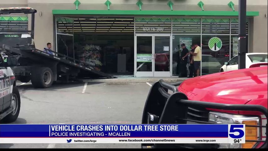 A Dollar Tree crew near FM 495 and Ware road are cleaning up what is left behind after a car crashed into the store.