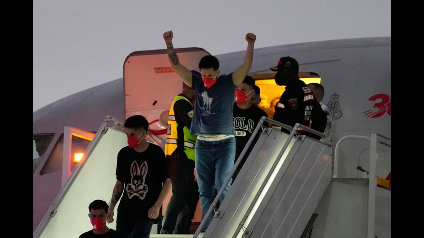 A plane carrying the freed Americans arrived late Friday evening at Joint Base San Antonio, with some waving flags and rushing to embrace welcomers after they landed.