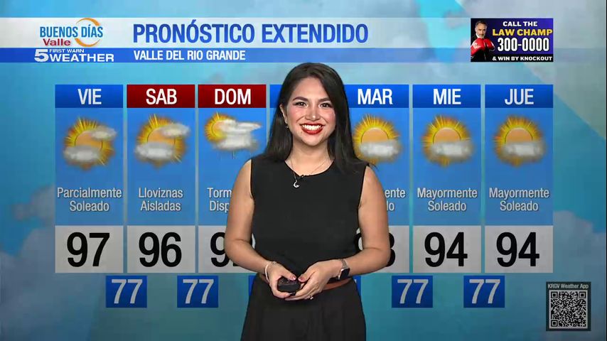 Viernes 13 de Septiembre: Parcialmente soleado, temperaturas en los 97s