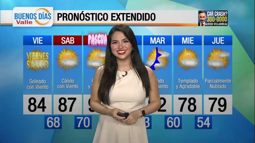 Viernes 29 de Marzo, 2024: Temperaturas en los 80s con Viento
