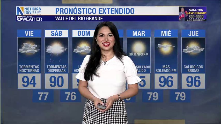 Viernes 30 de Mayo: Cálido y húmedo, temperaturas en los 94s